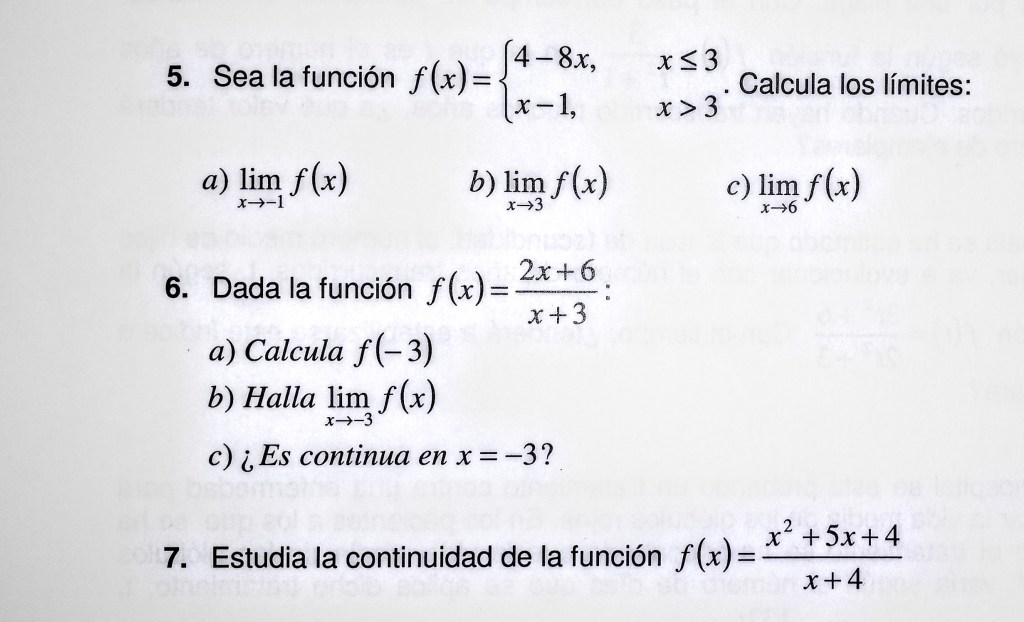 Las siguientes funciones son, o no, discontinuas en alguno de sus puntos.