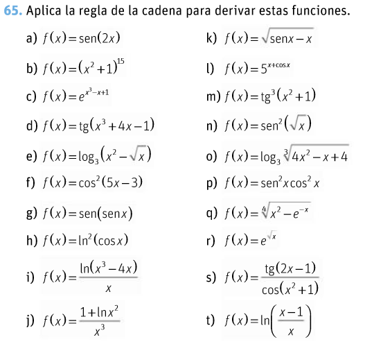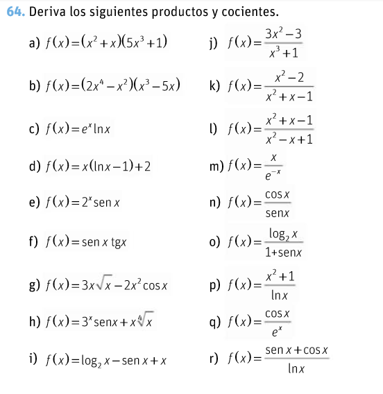 Vamos a ver las derivadas inmeditas más derivadas mediante operaciones y regla de la cadena.